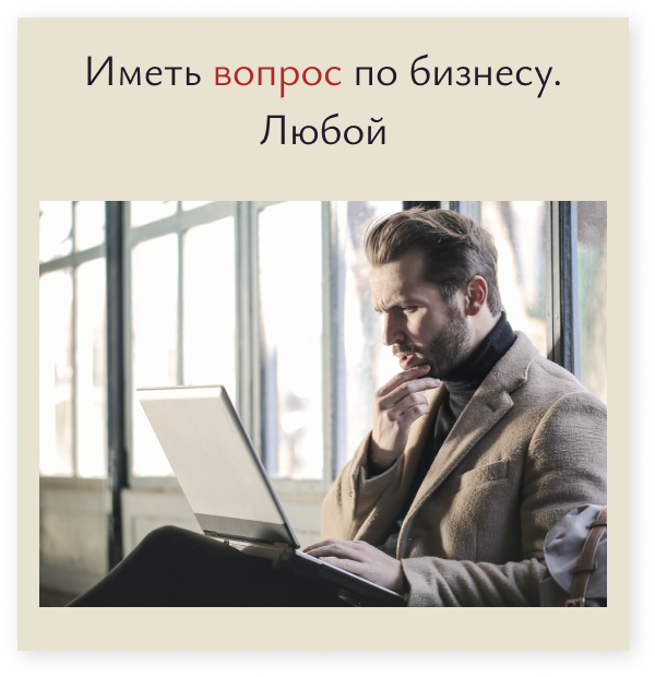 Получить поддержку и найти вместе решение. Лично, быстро, конфиденциально. Уйти с полным ощущением, что решение — собственное, только кто-то рядом «помогает» думать…